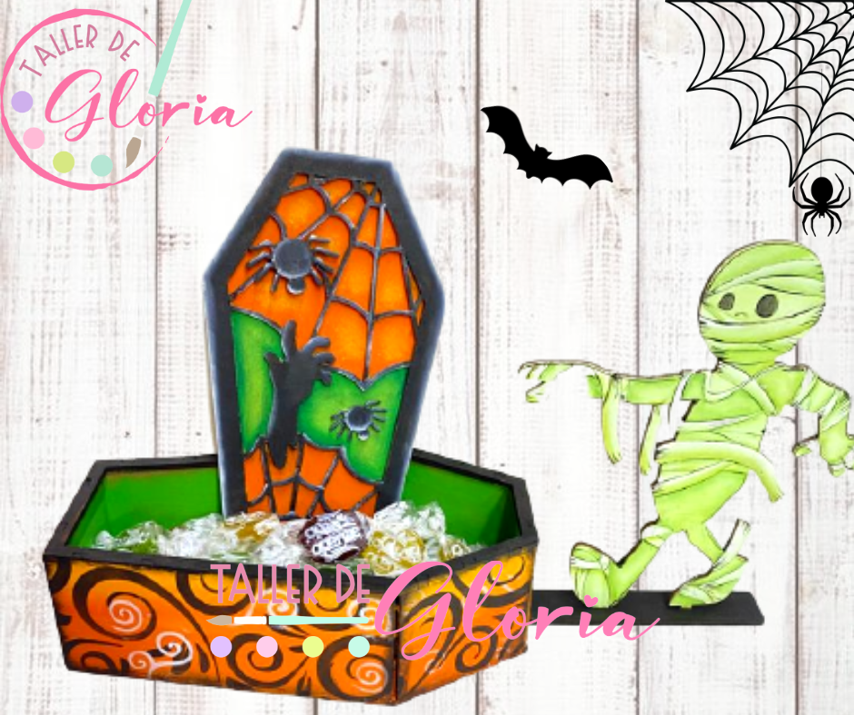 Medida aproximadas: 10 x 18 x 16 cm tumba, 16.5 cm alto momia.