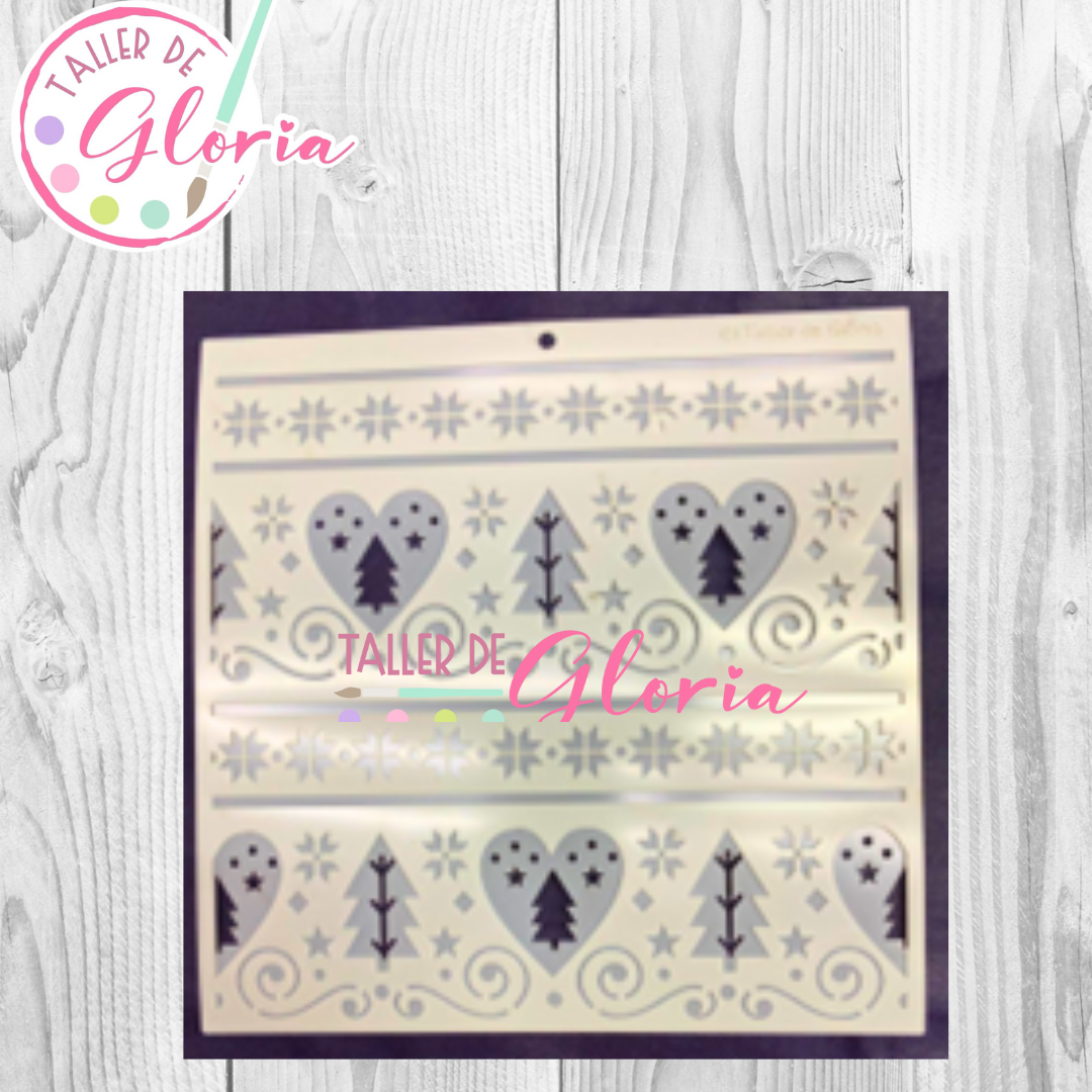 TGN-83 Esténcil Corazones con Pinos 2 pasos